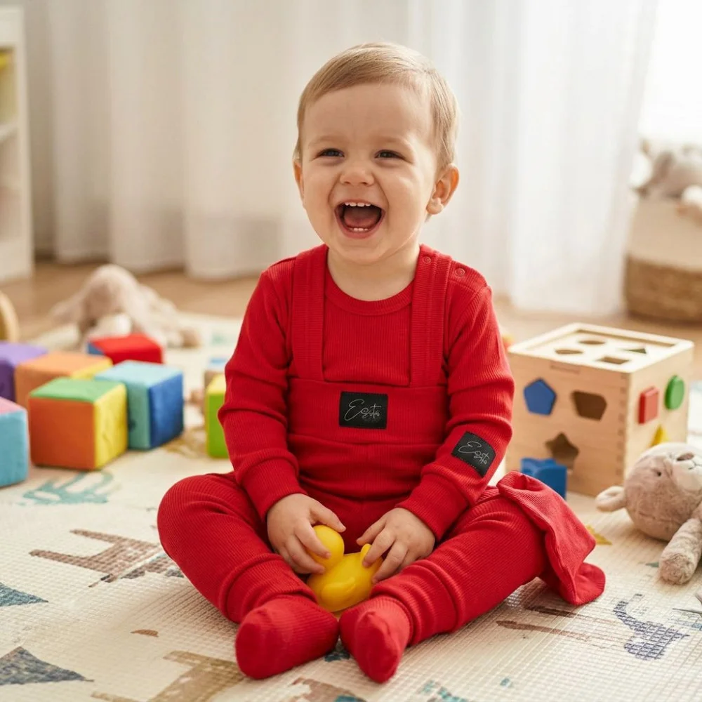 Objevte nepřekonatelné rostoucí žebrované kalhoty s laclem Color Red – skvělá volba pro vaše...