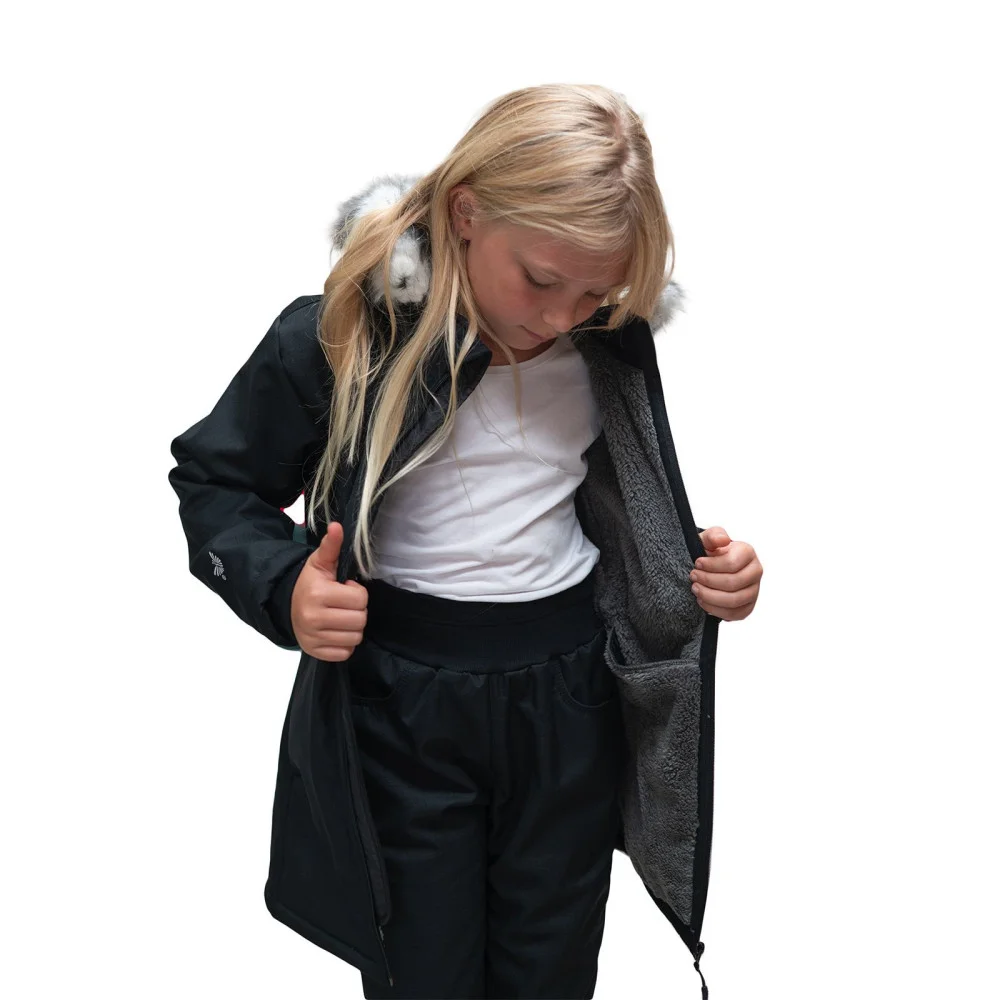 Venku mrzne, fouká vítr a padá sníh. Náš dívčí zimní softshellový kabát s beránkem Lamb Black vyřeší všechny tyto starosti najednou.
