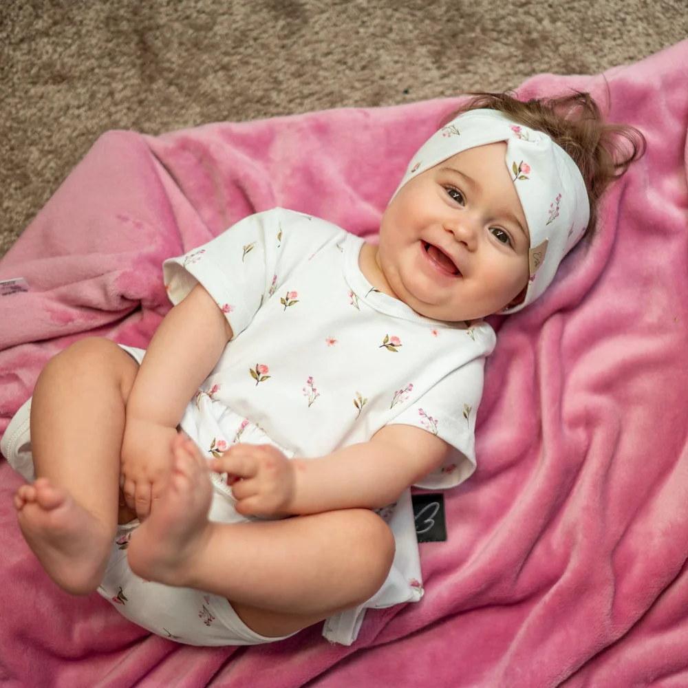 Bavlněný dívčí šátek na hlavu s digitálním potiskem Jemný kvítek. Určitě si oblíbíte pružnost,...