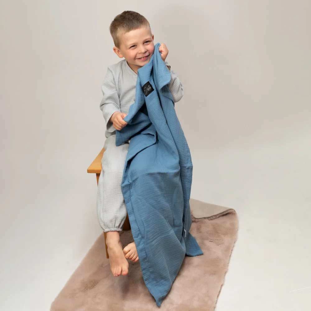 Naše mušelínová deka Denim blue je: