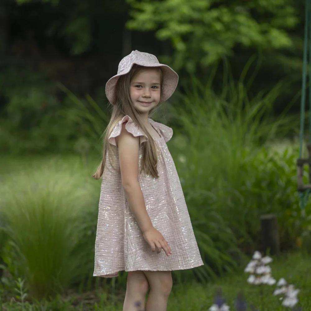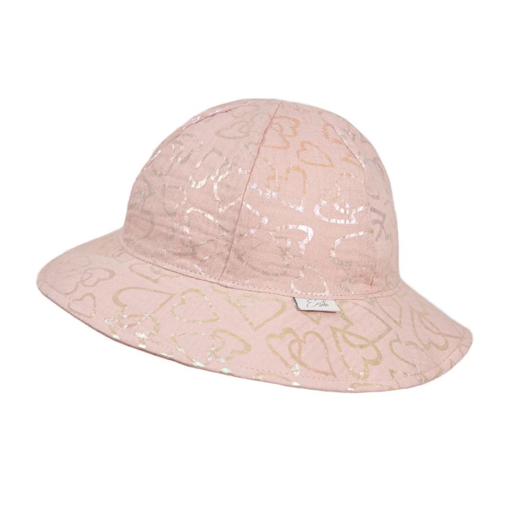 Lehký, dívčí mušelínový klobouk Shiny heart, který chrání hlavu, ouška i krk malých princezen proti sluníčku. Skvěle padnoucí klobouk ze vzdušného mušelínu.