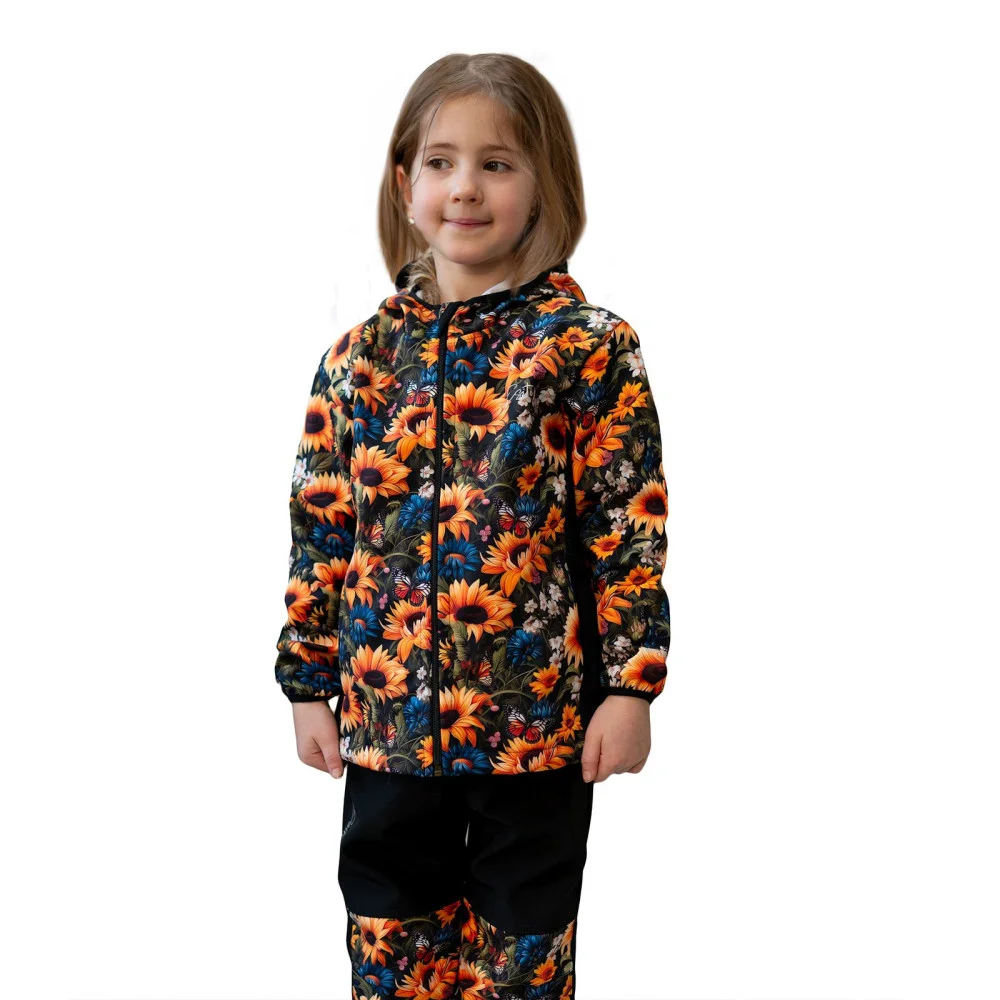 Dětská softshellová bunda DUO Slunečnice – Připravte své dítě na každé venkovní dobrodružství!...