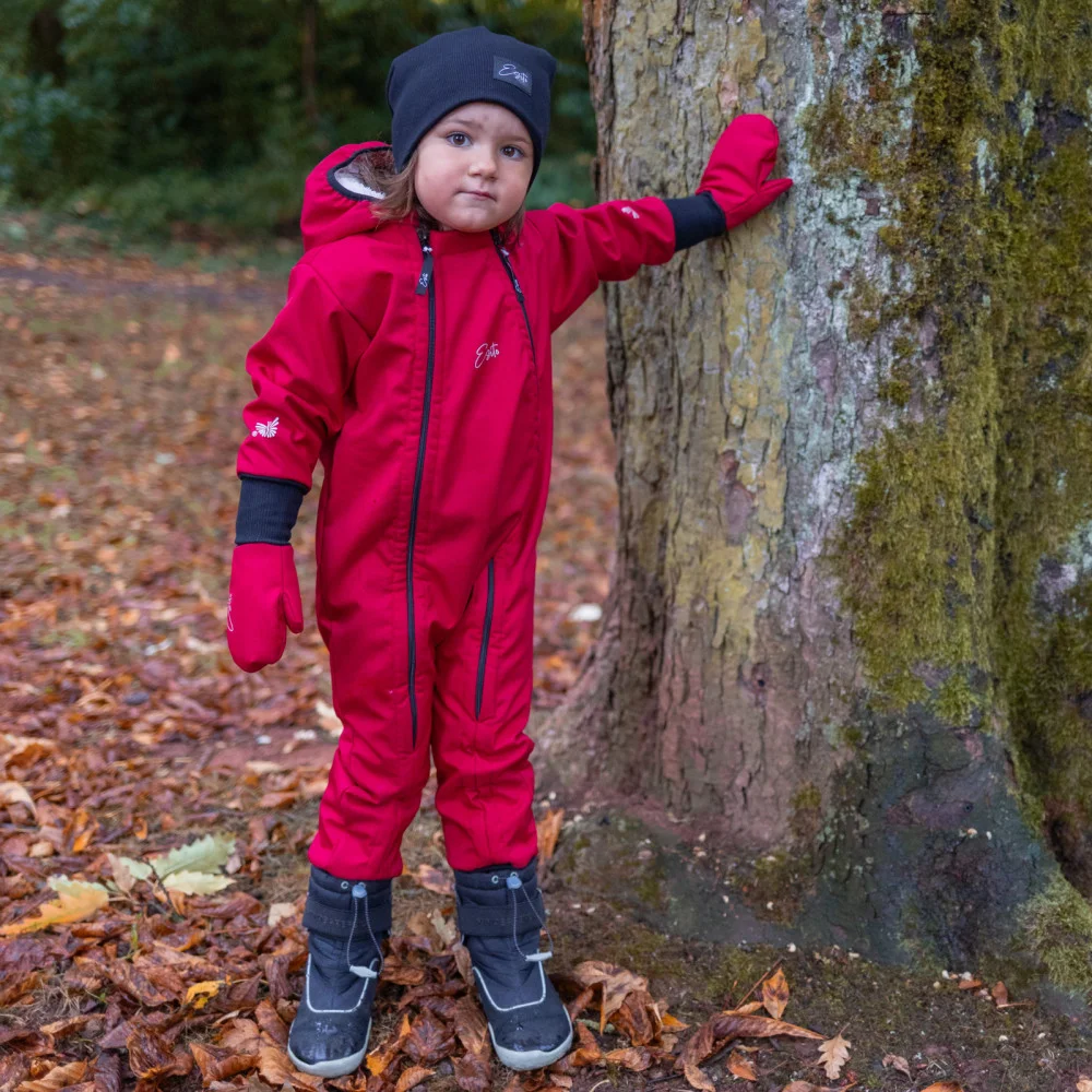 Zimní rukavice Red z vysoce kvalitního softshellu s beránkem. Dětské palcové rukavice pro děti od...