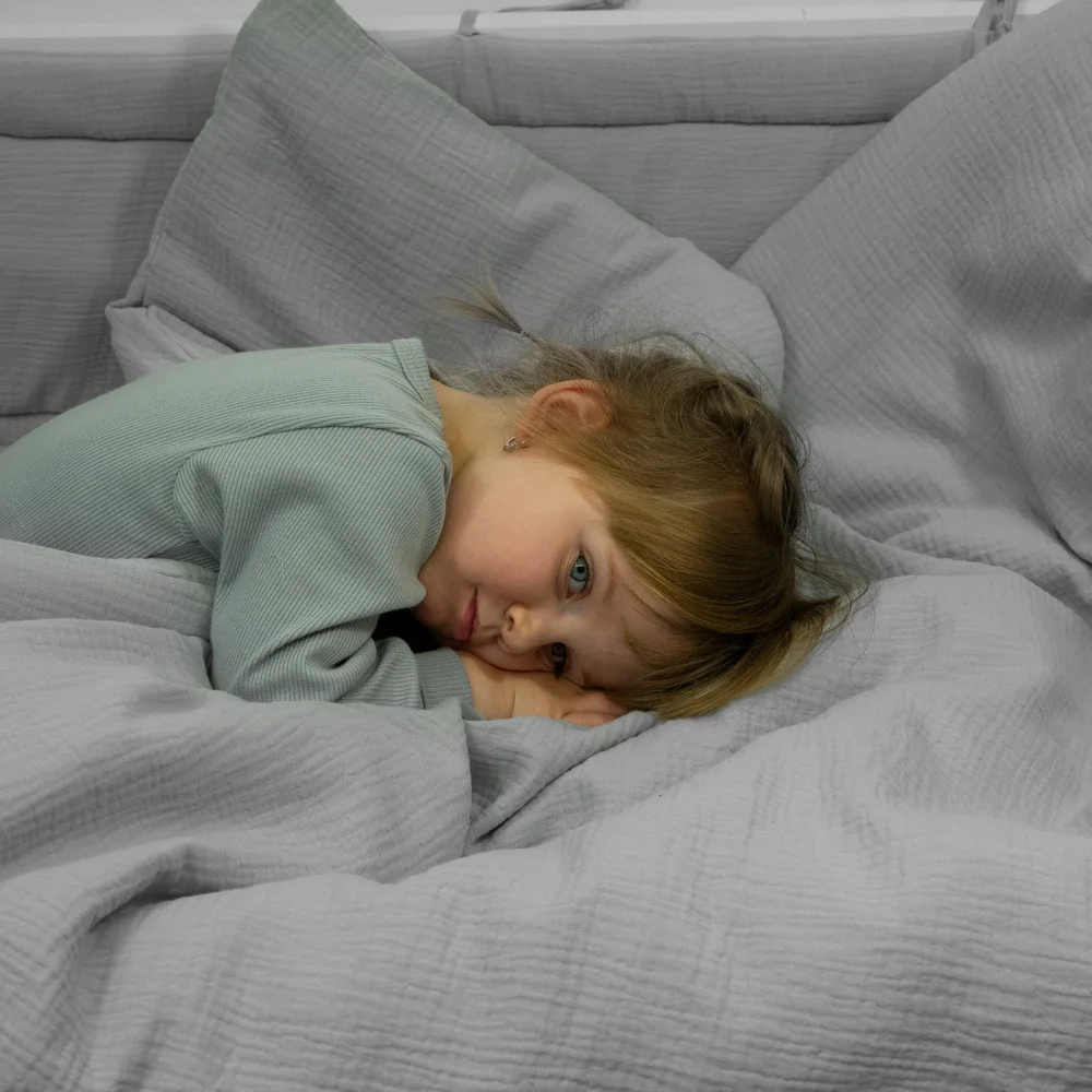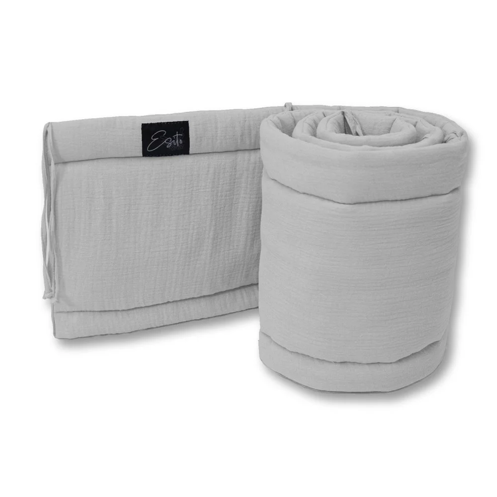Mušelínový mantinel Dove grey do postýlky je oboustranný, libovolně umístitelný, měkký a zároveň držící tvar. Délka 180 cm.