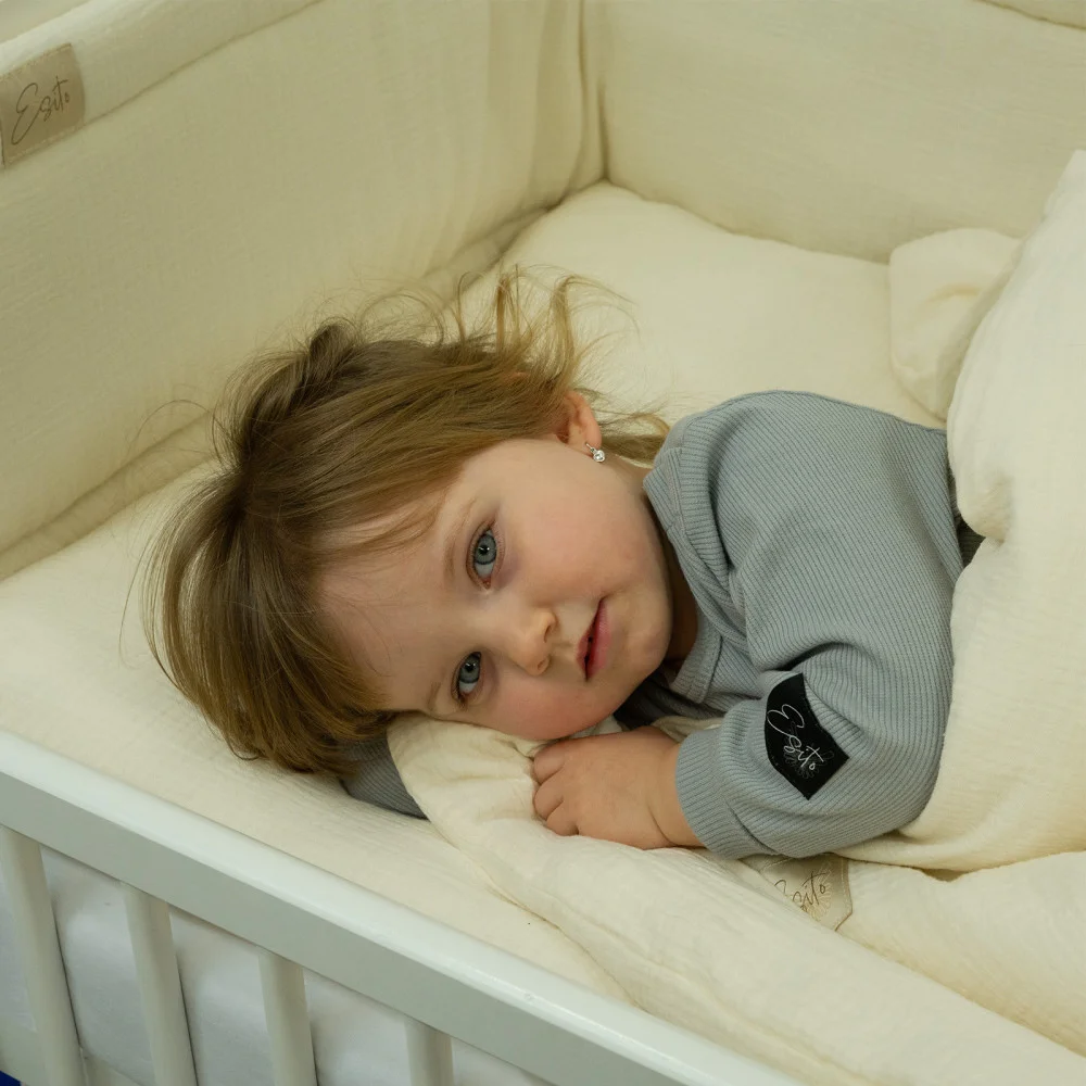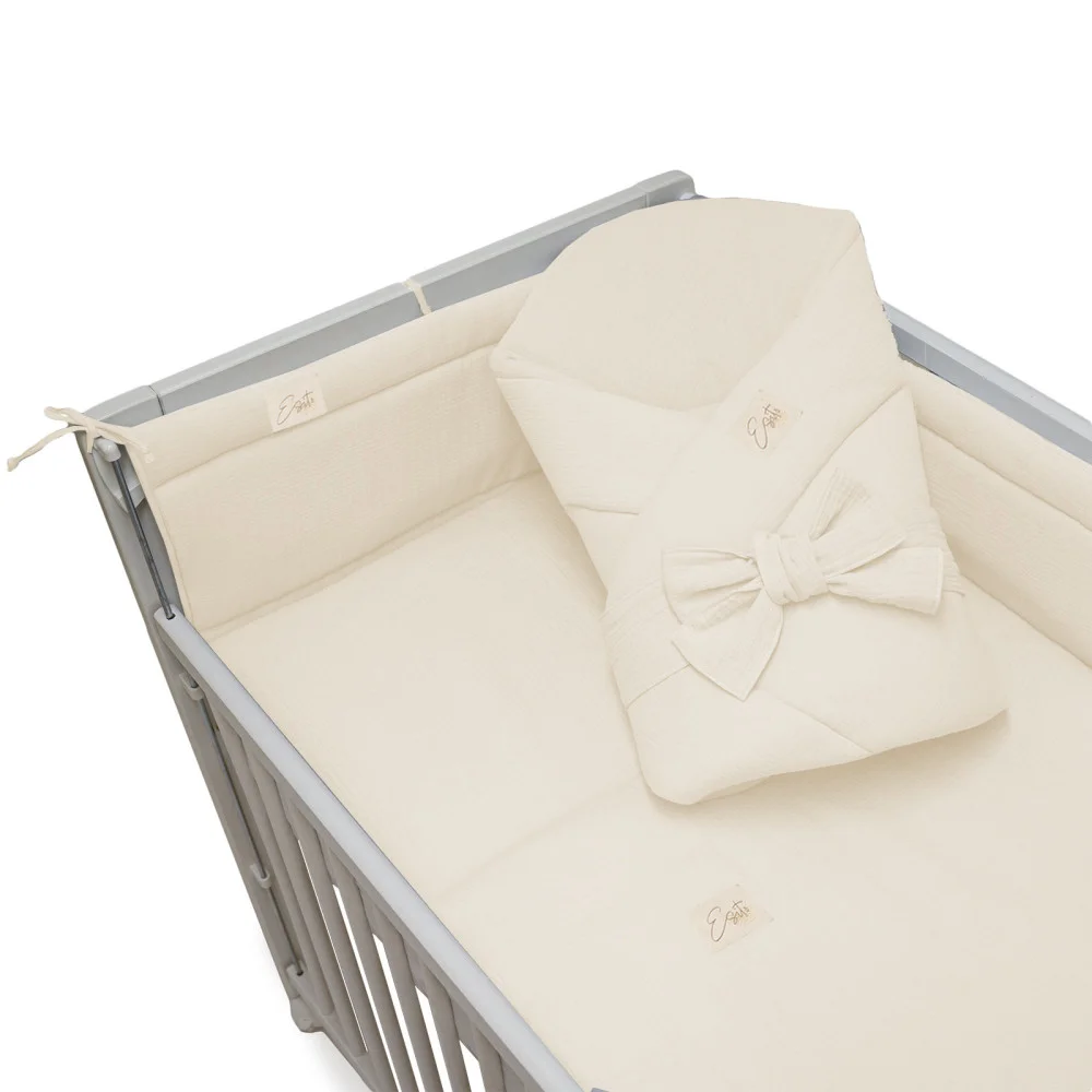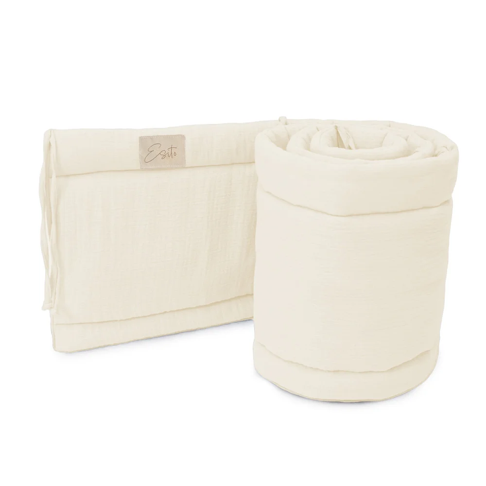 Mušelínový mantinel Cream do postýlky je oboustranný, libovolně umístitelný, měkký a zároveň držící tvar. Délka 180 cm.