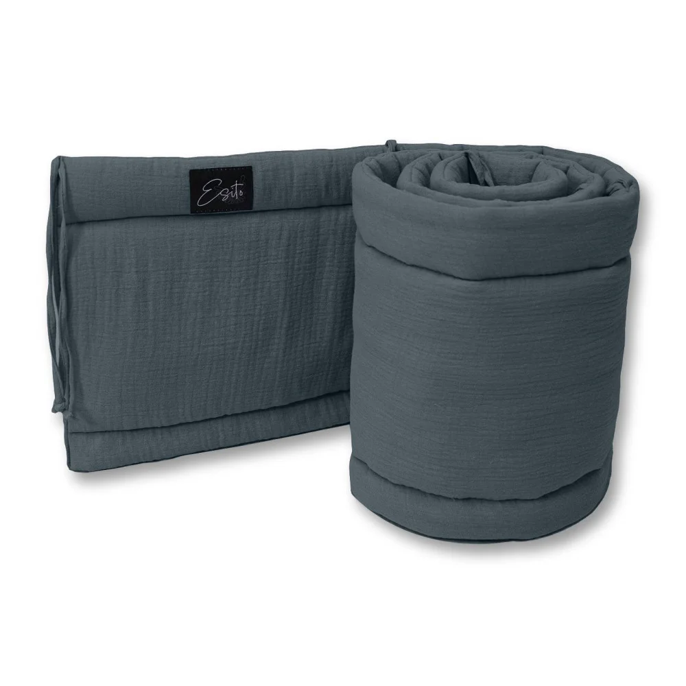 Mušelínový mantinel Antracite do postýlky je oboustranný, libovolně umístitelný, měkký a zároveň držící tvar. Délka 180 cm.