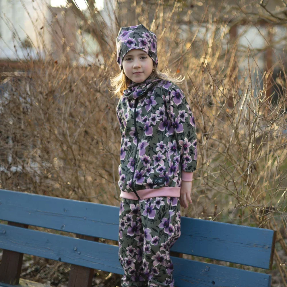 Dětská mikina na zip Purple flower z kolekce EasyFit. Mikina bez kapuce z výběrového a kvalitního materiálu. Dětská mikina precizně ušitá v podhůří Orlických hor.