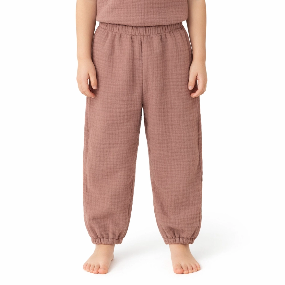 Naše mušelínové kalhoty, zajišťují naprosté pohodlí, žádné pocení i během horkých letních dnů. Kalhoty, které jsou tak jemné, že se v nich vaše dítě cítí, jako by bylo zahaleno v obláčku a chráněno před horkými paprsky.