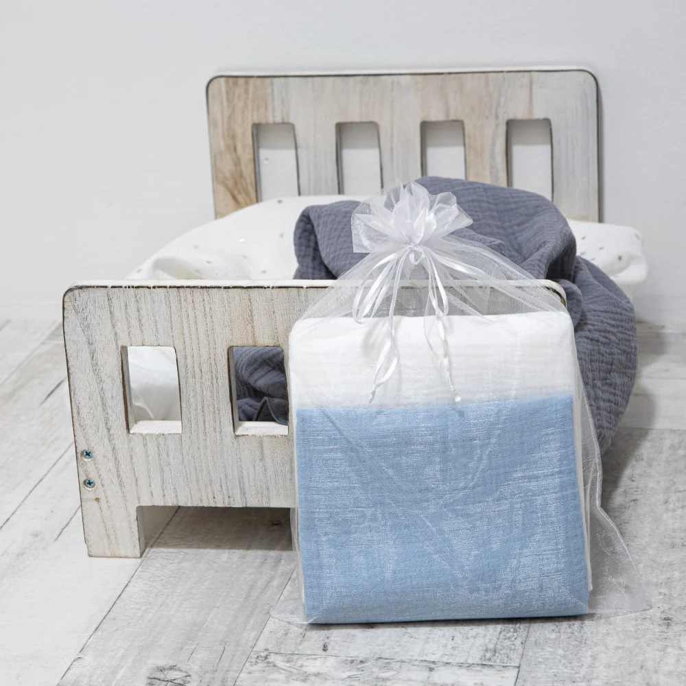 2 mušelínové pleny vyrobené z mimořádně jemné 100% bavlny jsou vzdušné a šetrné k pokožce vašeho miminka. Barevné provedení bílá - modrá. 100% český hand made výrobek od ESITO.