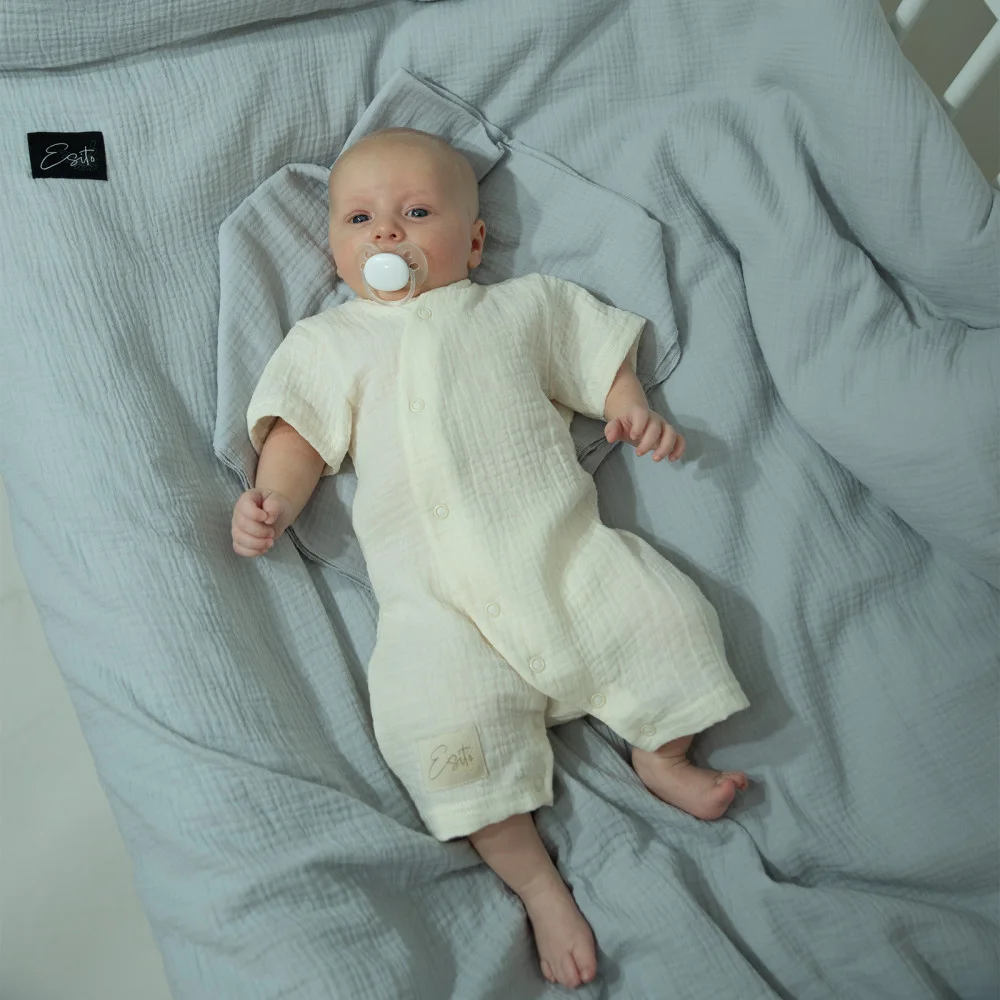 Vzdušný letní overal pro miminko mušelín Cream z té nejlepší certifikované mušelínové bavlny. Letní overal zajistí naprostou lehkost, jemnost a prodyšnost. S láskou ručně šité letní overaly pro miminka v podhůří Orlických hor.