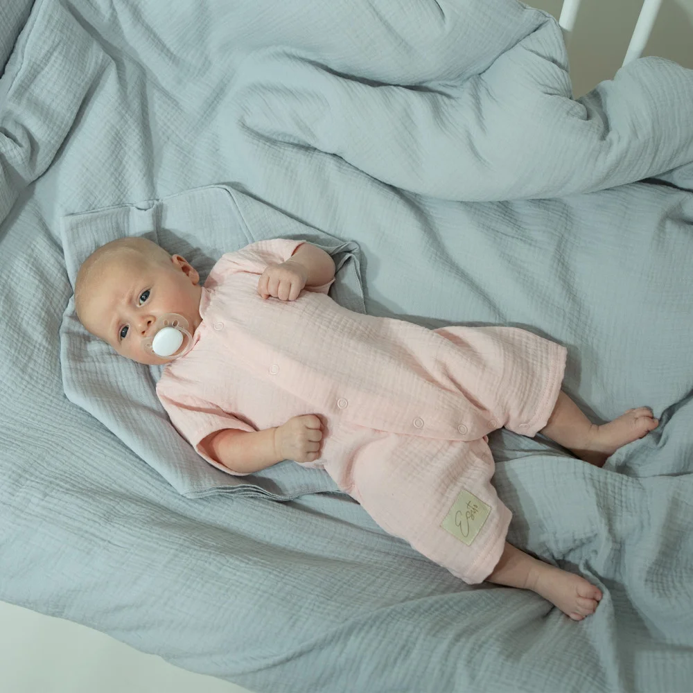 Vzdušný letní overal pro miminko mušelín Pink z té nejlepší certifikované mušelínové bavlny. Letní overal zajistí naprostou lehkost, jemnost a prodyšnost. S láskou ručně šité letní overaly pro miminka v podhůří Orlických hor.