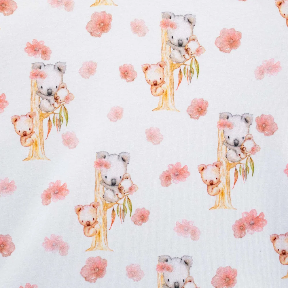 Biobavlněné dětské pyžamo s digitálním potiskem Koala. Vhodné pro alergiky a jemné k citlivé dětské pokožce s certifikací GOTS. S vyměnitelnou gumou v pase od českého výrobce ESITO. Dostupné ve velikostech 116 a 122.