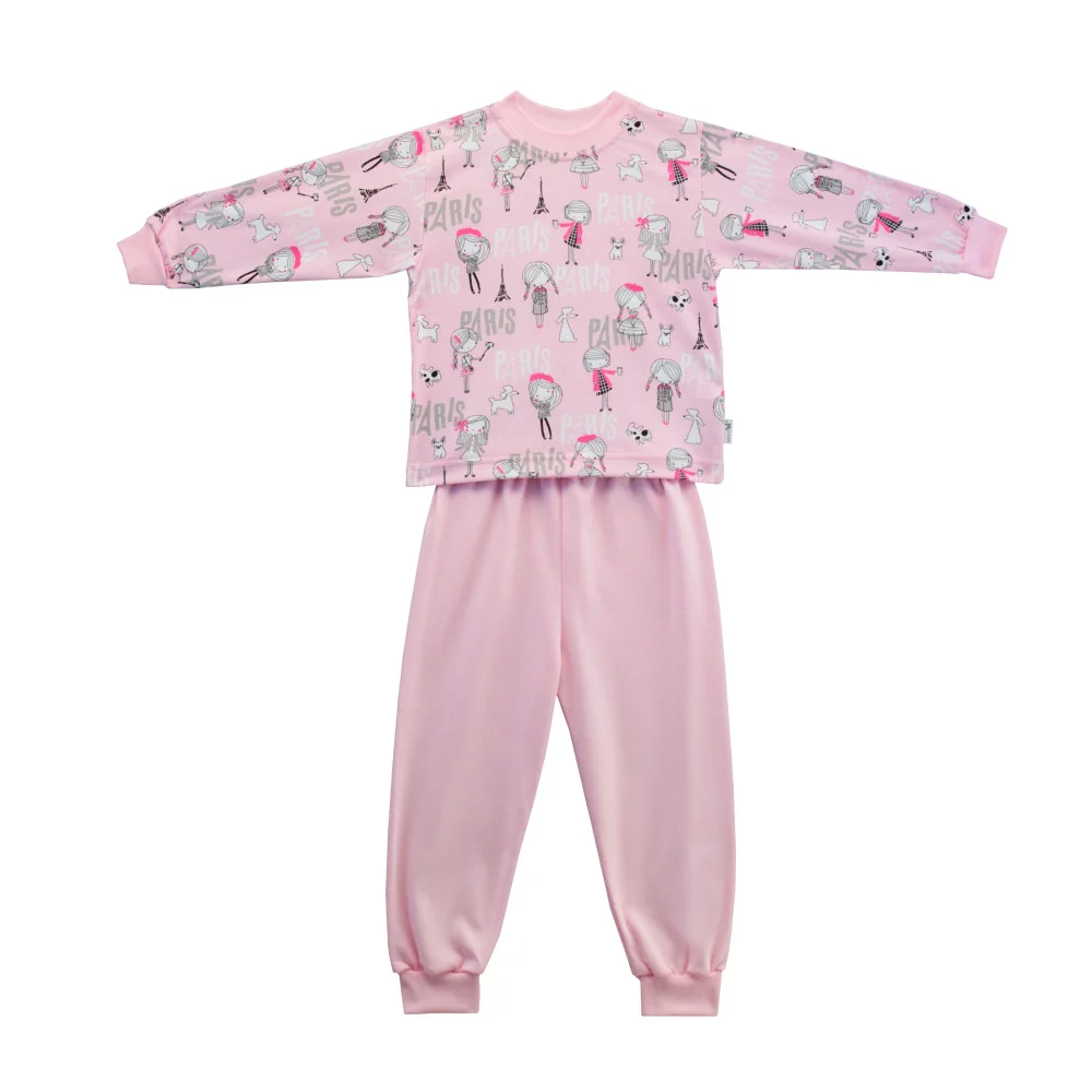 Bavlněné dívčí dětské pyžamo s potiskem Paris je vhodné zejména pro holčičky. Pružný úplet okolo krku, rukávů a kotníků díky kterému nepadá z rukou ani nohou - již žádné šlapání si po nohavicích. V pase má dívčí pyžamo vyměnitelnou gumu. Díky použitému materiálu jde o velmi pohodlné dětské pyžamo, které navíc skvěle drží tvar. Český výrobek z certifikovaných materiálů od ESITO.