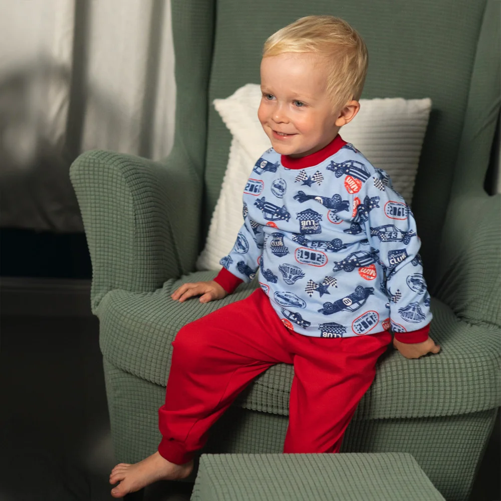 Dětské pyžamo ze 100% bavlny Jersey s potiskem Racing CLUB. Pyžamo s vyměnitelnou gumou v pase od českého výrobce. Bezstarostné a pohodlné spaní v jemné bavlnce.