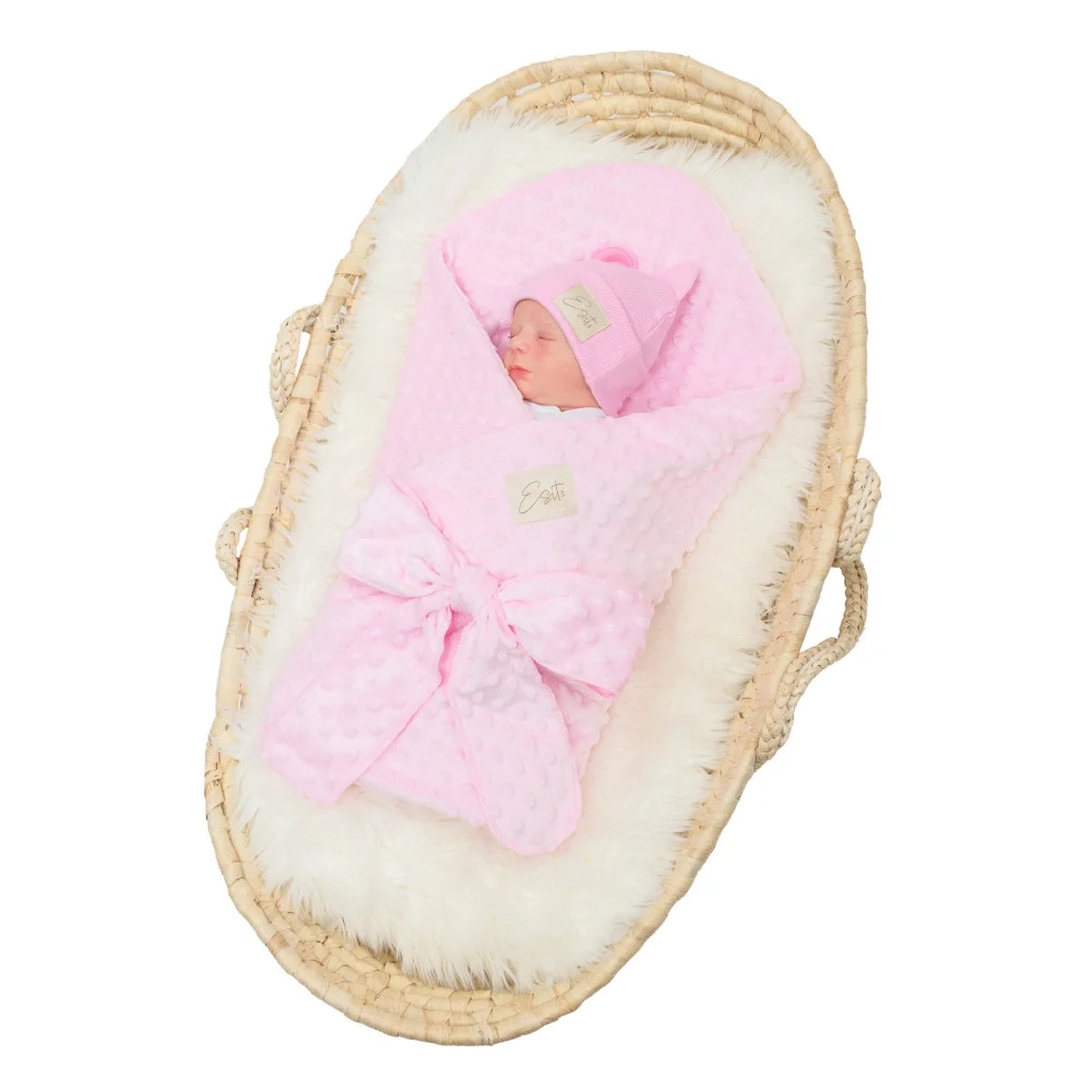 Krásná letní zavinovačka pro miminko Minky Pink z jemné minky. Ručně šitá rychlozavinovačka bez výplně s rozměrem 75 x 75 cm a širokou mašlí pro pevné zavinutí.