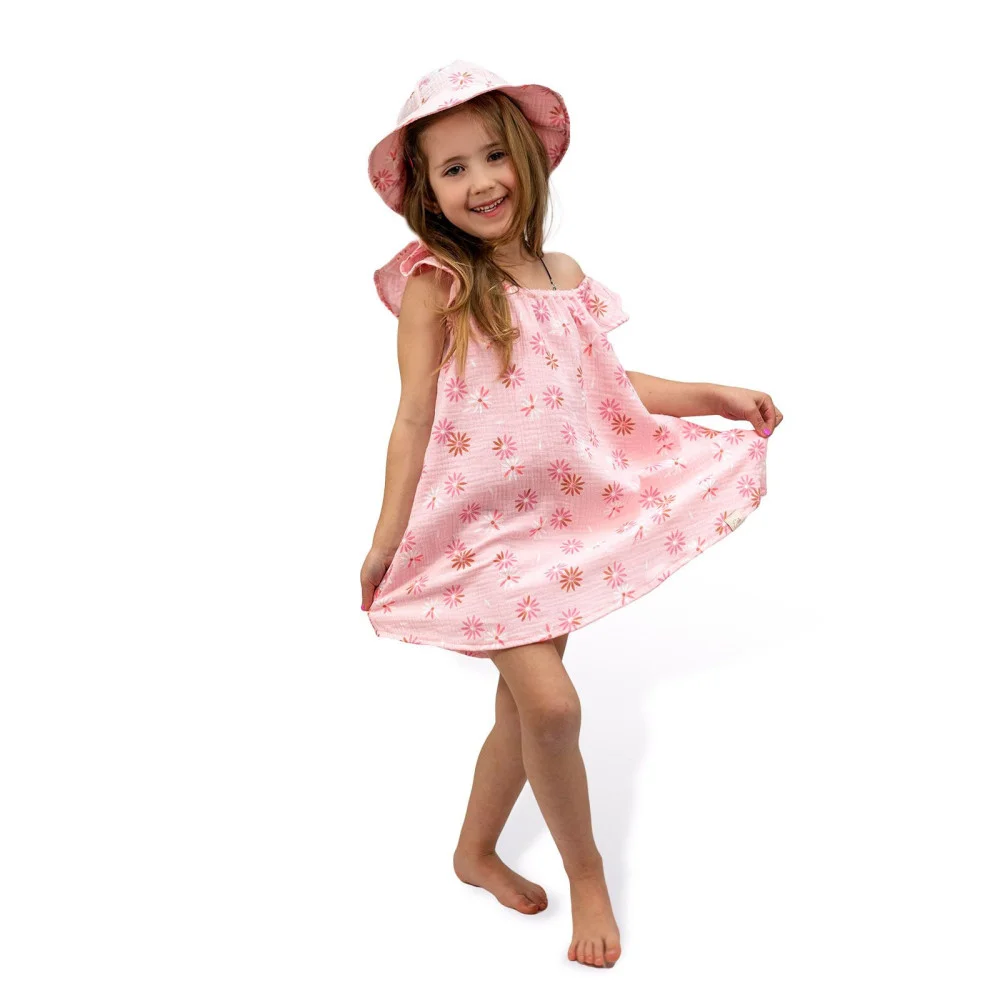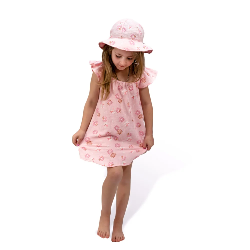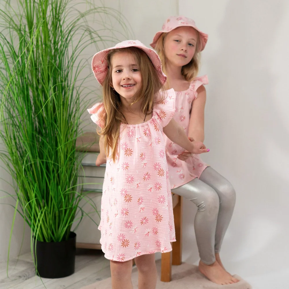 Lehký, dívčí mušelínový klobouk Flower, který chrání hlavu, ouška i krk malých princezen proti...