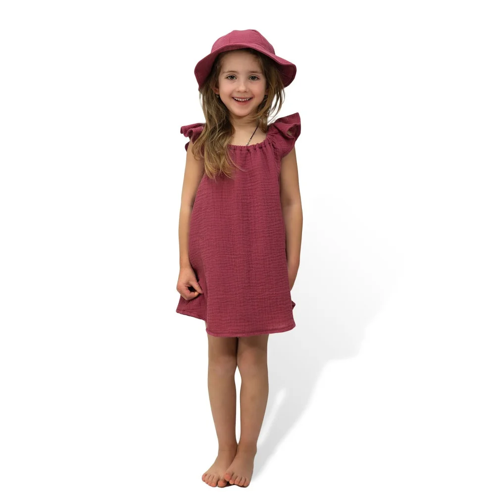 Lehký, dívčí mušelínový klobouk Ruby red, který chrání hlavu, ouška i krk malých princezen proti...