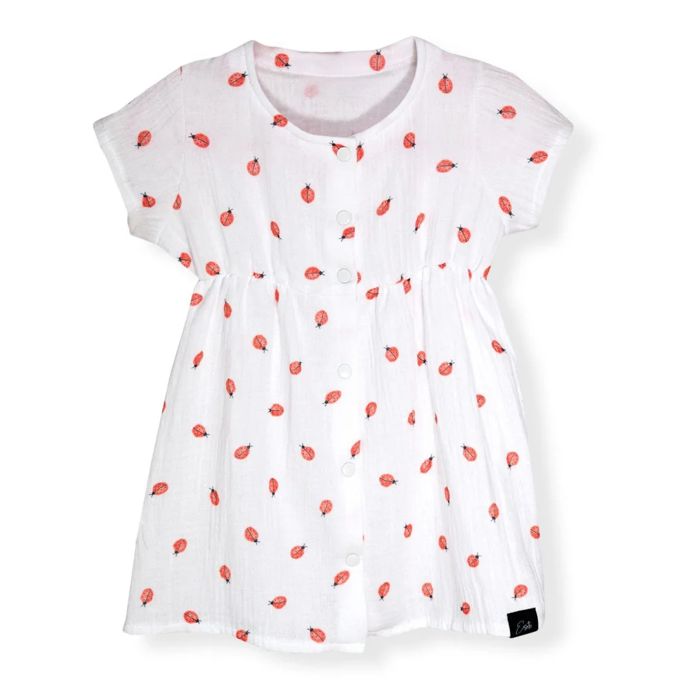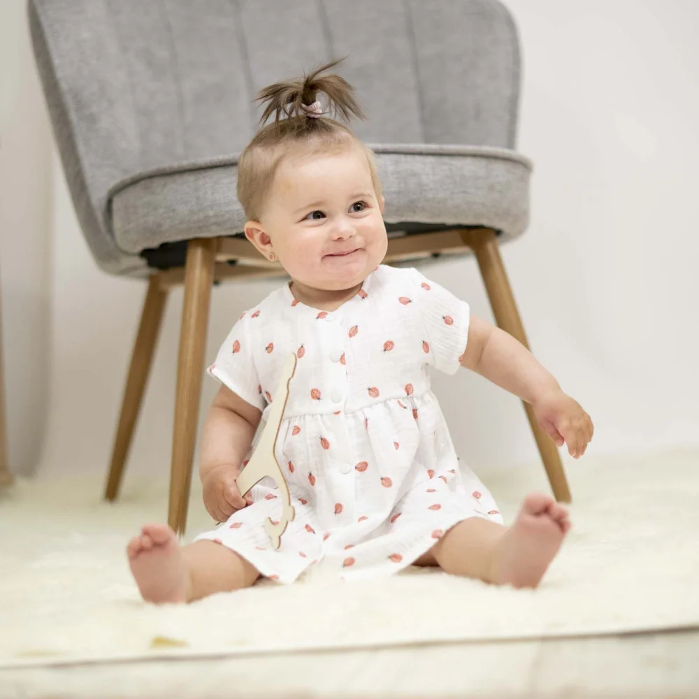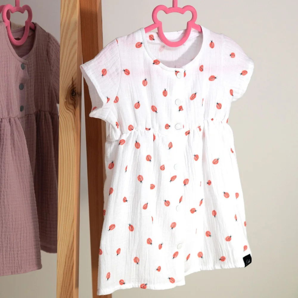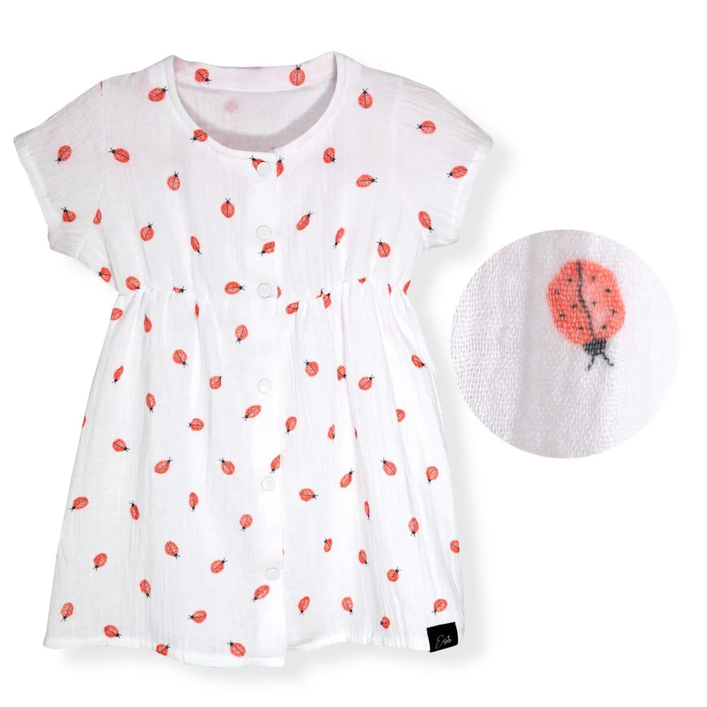 Proč jsou mušelínové šaty Barunka Beruška pokladem v šatníku vaší holčičky? Neuvěřitelně hebký a vzdušný materiál. Prvotřídní mušelínová bavlna s certifikátem Oeko-Tex Standard 100 zaručuje, že pokožka vaší holčičky bude vždy v bezpečí. Žádné škodlivé látky, žádné chemikálie – jen čistá přírodní dokonalost. Materiál, který dýchá spolu s ní, i když teploměr ukazuje tropické teploty. Praktičnost pro maminky, pohodlí pro malé slečny. Celo propínací design na druky znamená konec bojů s oblékáním! Žádné tahání přes hlavičku, žádné slzičky při převlékání. Stačí rozepnout, položit, zapnout a vaše princezna je připravena dobývat svět. Nadčasová krása s motivem berušky. Jemný motiv berušky dodává šatům hravost a radost, kterou si vaše holčička zamiluje. Odolnost proti nástrahám dětského světa. Víme, že děti jsou nespoutané. Proto jsme vytvořili šaty, které zvládnou běhání, skákání, válení v trávě i zmrzlinové nehody. Snadné praní, žádné žehlení a látka, která si zachovává svůj tvar i po stovkách vyprání.
