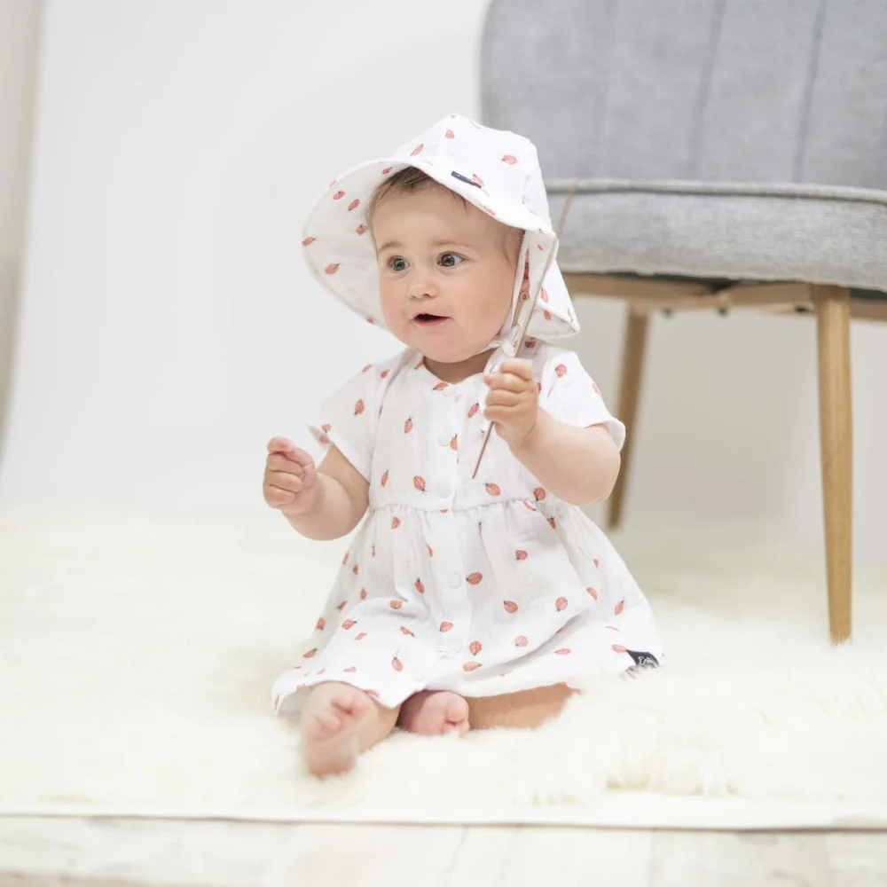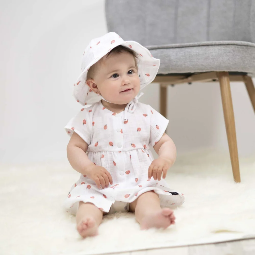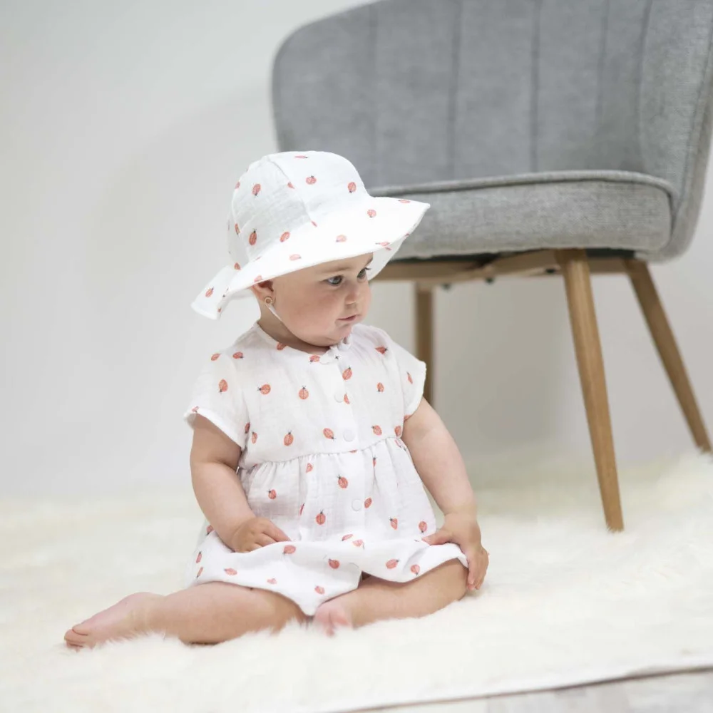 Lehký, dívčí mušelínový klobouk Beruška, který chrání hlavu, ouška i krk malých princezen proti...