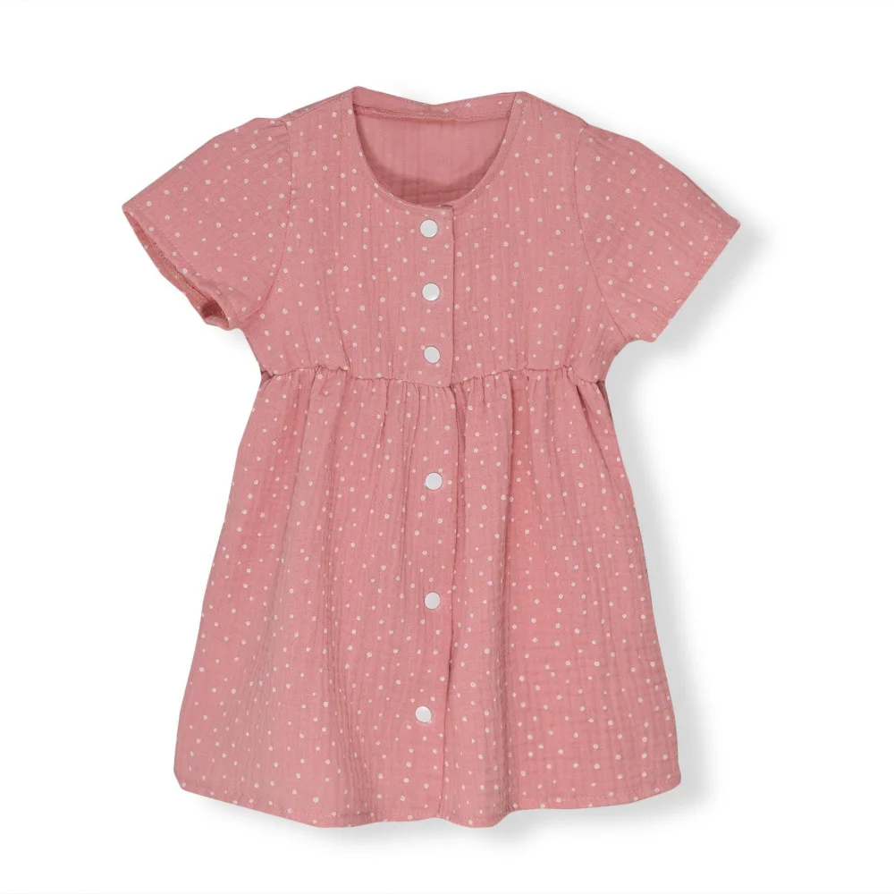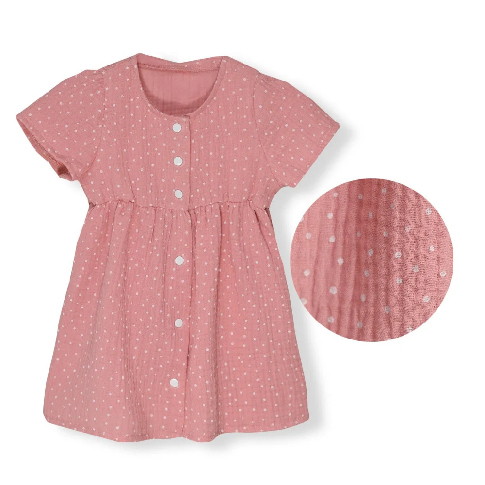 Jemné tečky motiv, který dodává šatům hravost a radost, kterou si vaše holčička zamiluje.