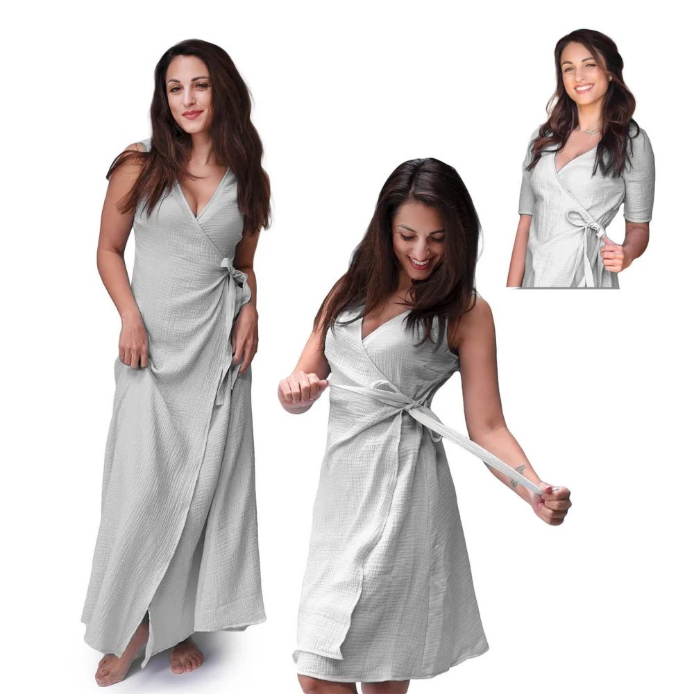 Mušelínové zavinovací šaty jsou velmi variabilní a odpovídají běžným konfekčním velikostem.