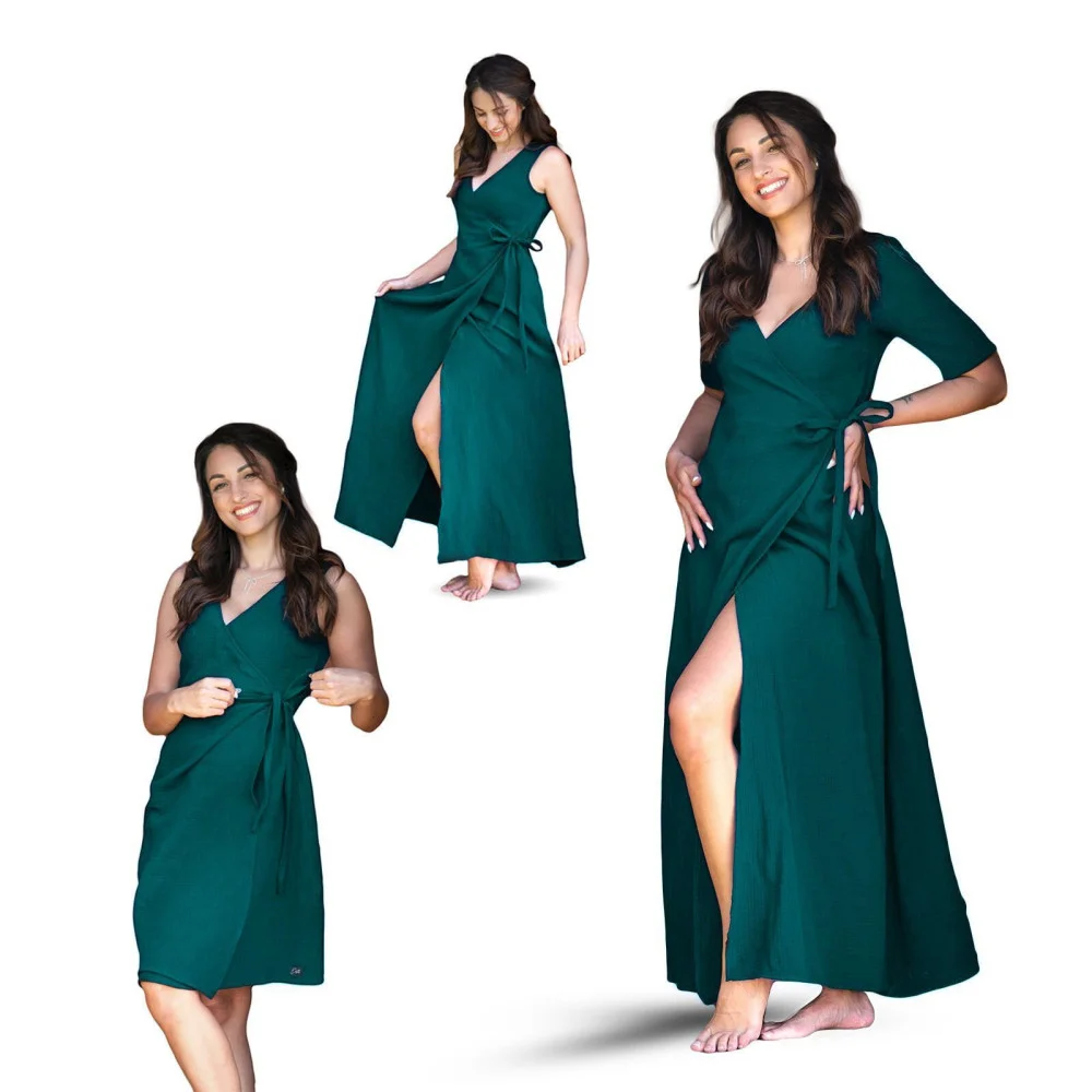 Mušelínové zavinovací šaty jsou velmi variabilní a odpovídají běžným konfekčním velikostem.