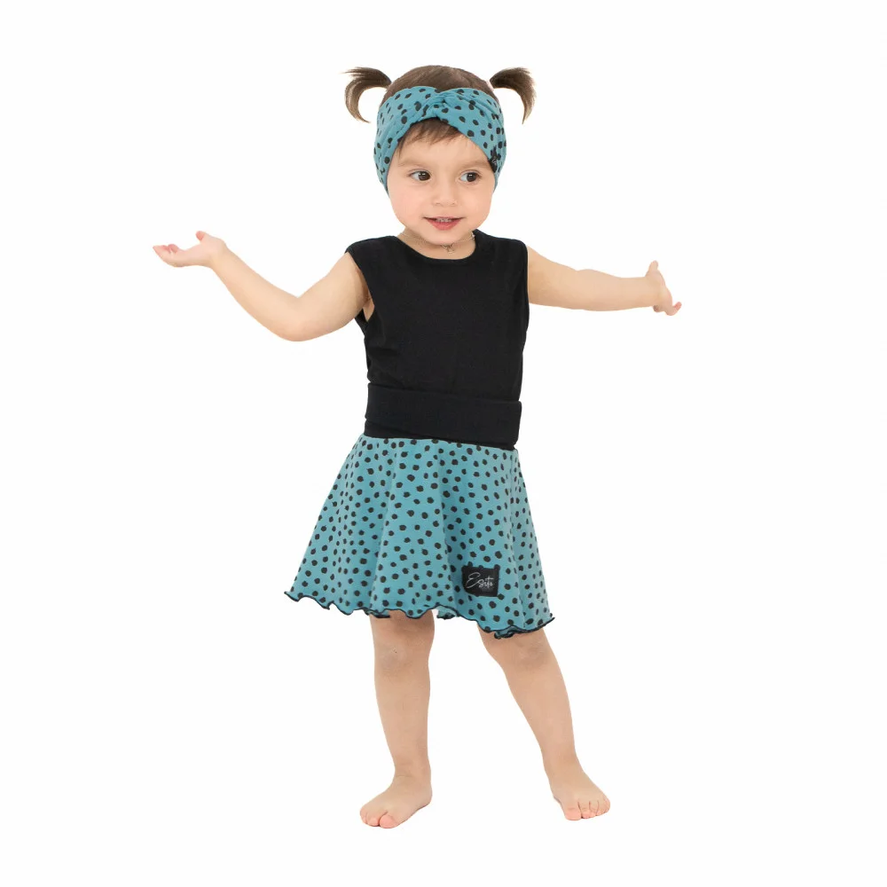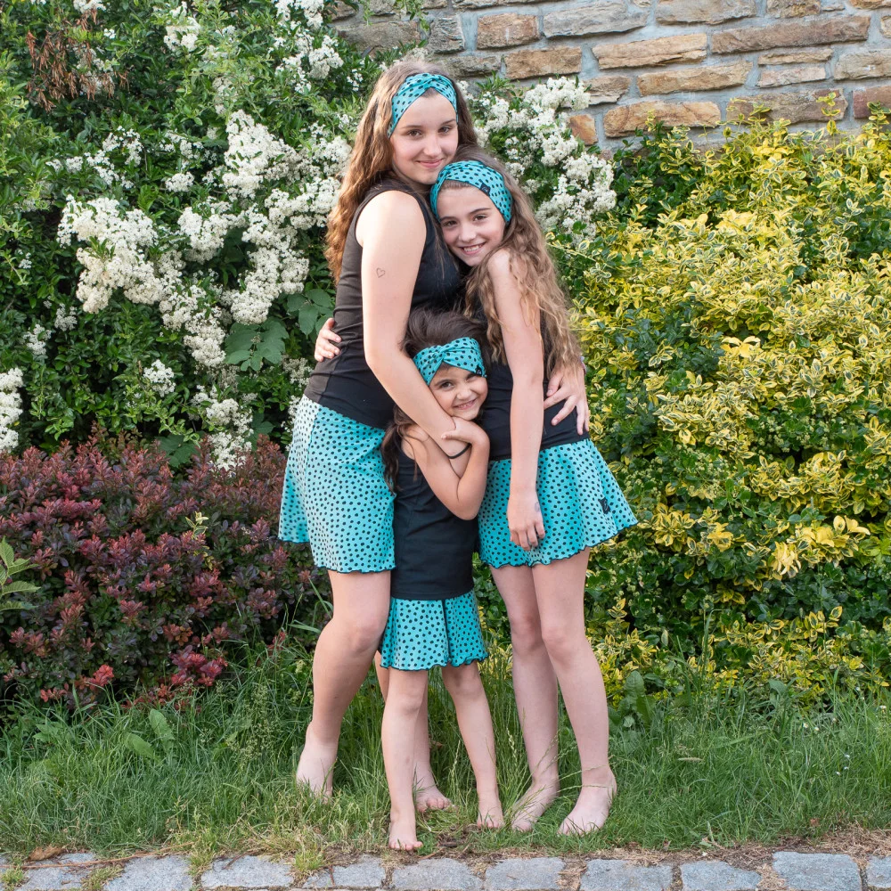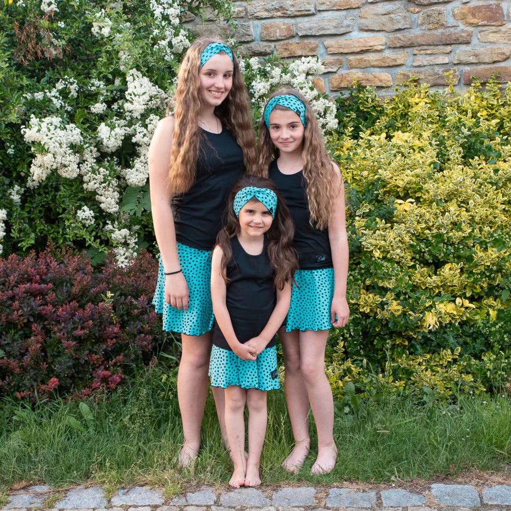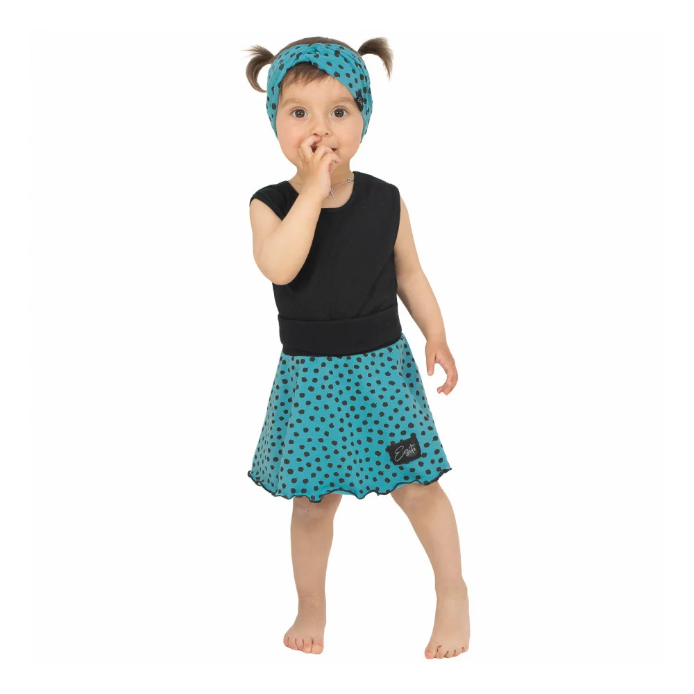 Dívčí kolová sukně Black Spot Turq. Sukně pro malé princezny do kočárku a pro větší ségry třeba na disco párty. Sukni oblékne i drobná maminka. Kolová sukně od ESITO.