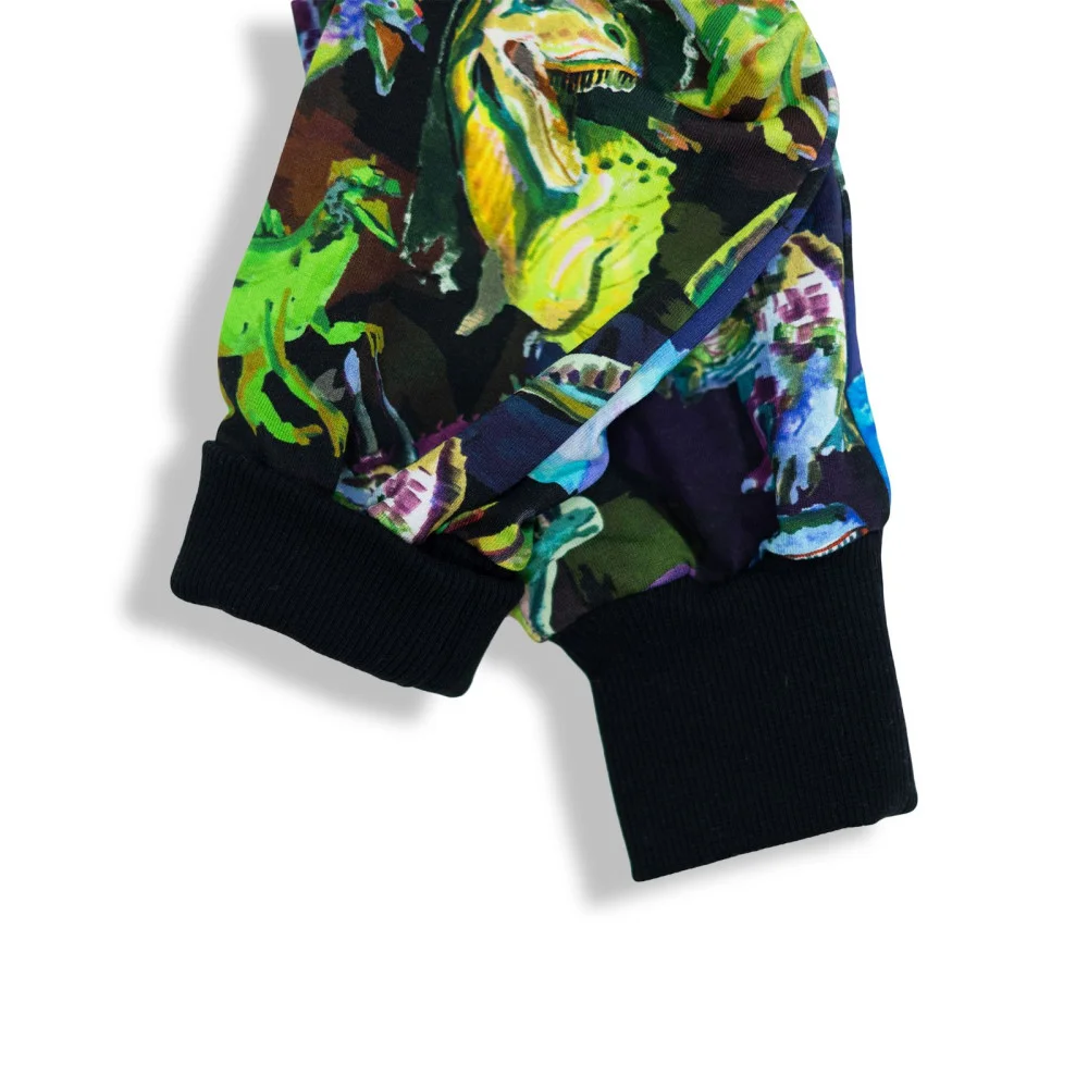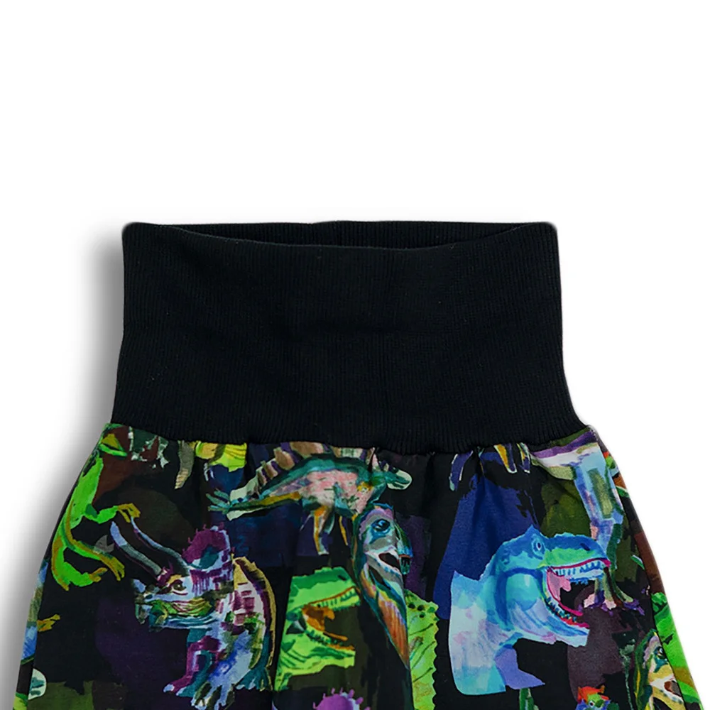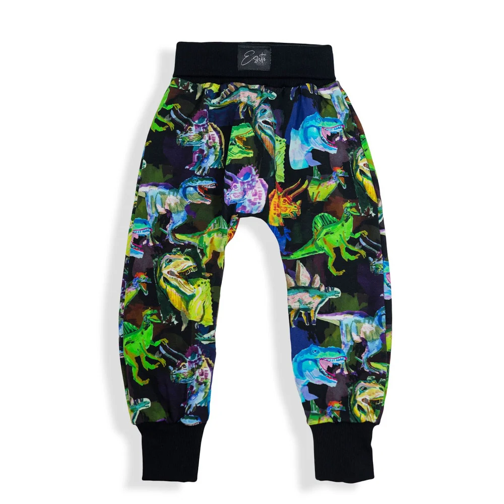Chytře navržené rostoucí tepláky Hraví dinosauři - pokryjí několik velikostí. Tepláky baggy děti milují díky volnému pohybu.