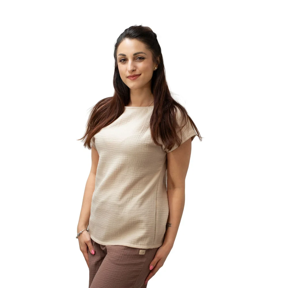 Naše mušelínové tričko Diana Ecru je investice do vašeho každodenního komfortu a stylu.